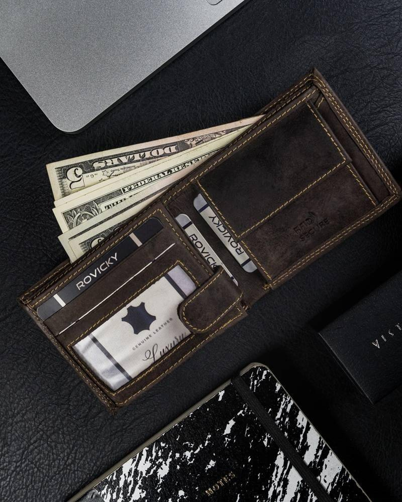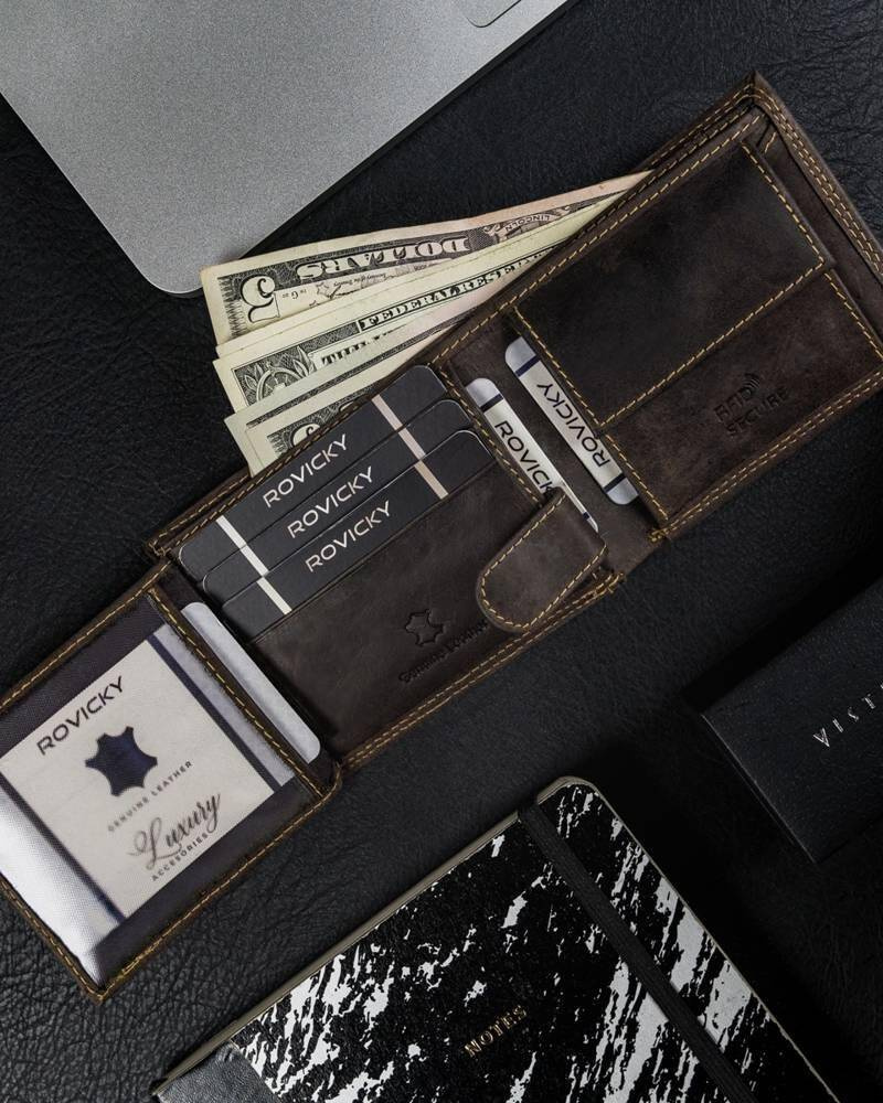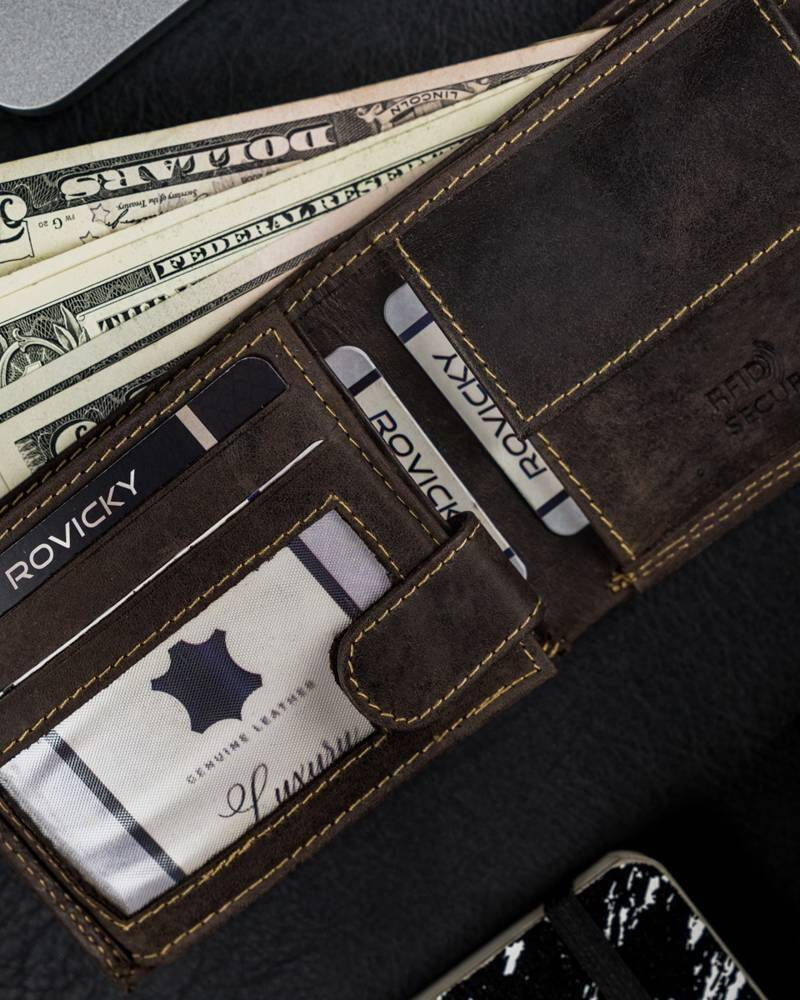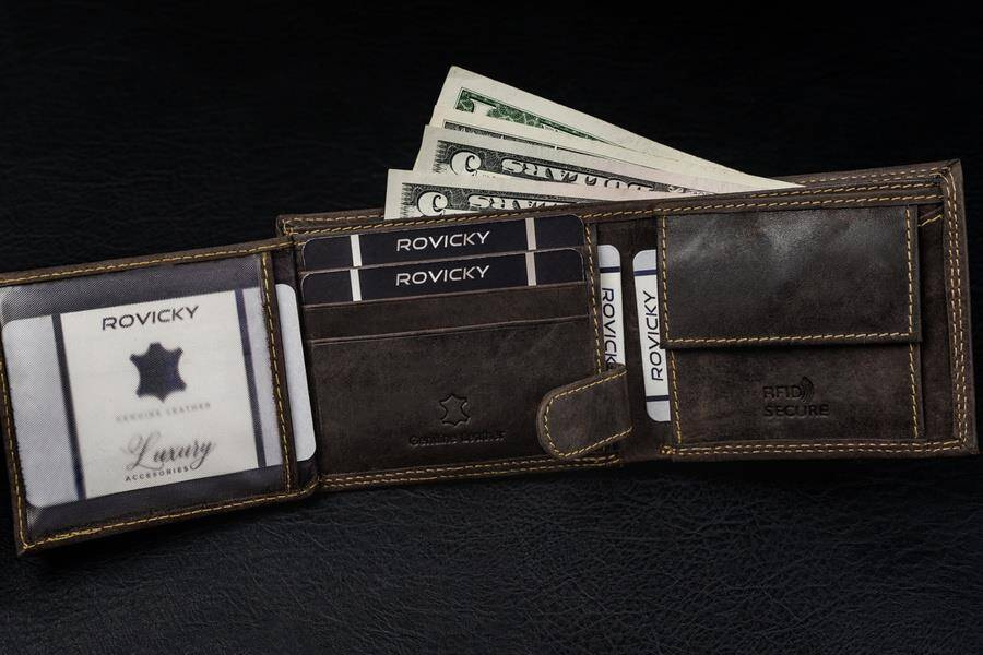 - Bezpieczny - wyposażony w technologie RFID, która chroni portfel przed złodziejami używającymi czytniku do kart.
