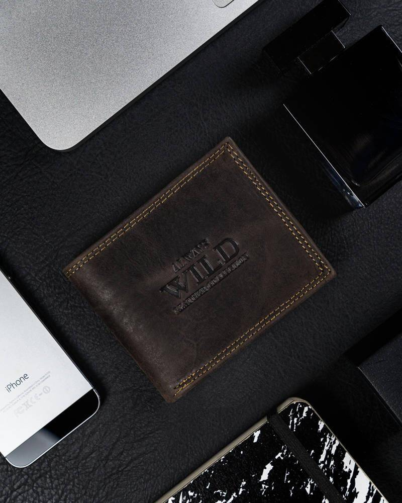 Na portfelu są tłoczenia poświadczające, że jest chroniony przez system RFID oraz to, że jest uszyty ze skóry naturalnej. Wewnątrz znajdują się wkładki ochronne, które chronią portfel przed odgniataniem się podczas podróży do Twoich rąk własnych.