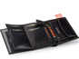 Jakość i precyzja wykonania | Odszyty bardzo trwale z doskonałej jakości skóry naturalnej w czarnym kolorze. Portfel na krawędzi ma czerwony element, na którym wytłoczono logo marki. Ten motyw znacznie odróżnia portfel od innych!