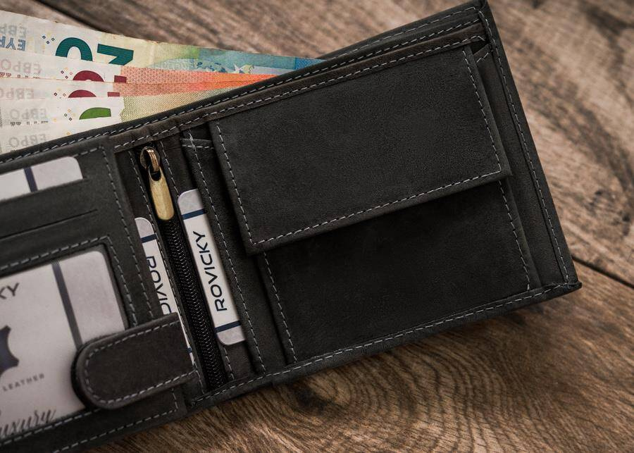 W kieszeniach na banknoty i monety zmieścisz satysfakcjonującą ilość gotówki.