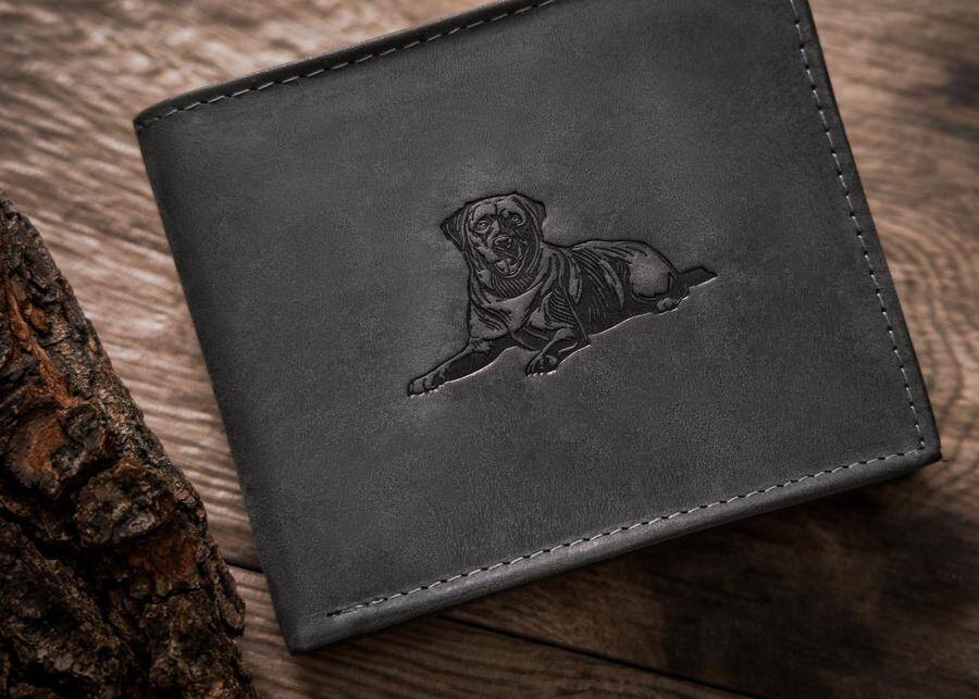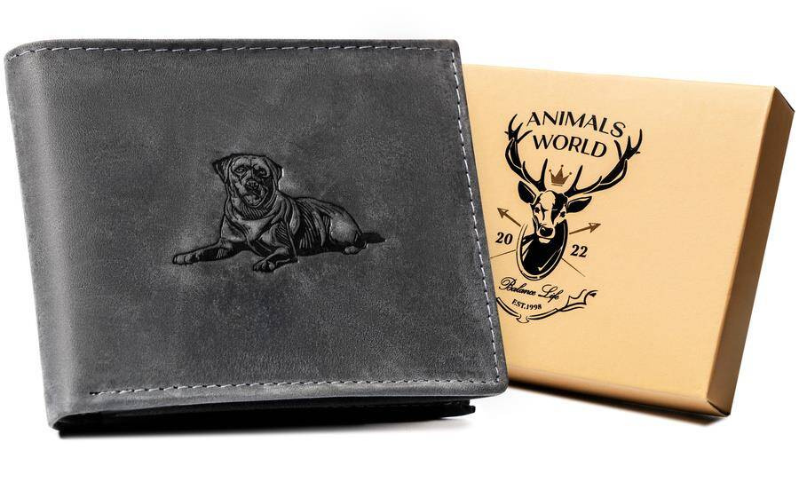 Portfel odszyty z trwałej nubukowej skóry naturalnej.