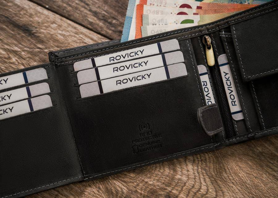Wyposażony w technologię RFID BLOCKING SYSTEM, która zabezpiecza karty zbliżeniowe, dokumenty biometryczne, legitymacje i karty komunikacji miejskiej przed nieautoryzowanym odczytem danych.