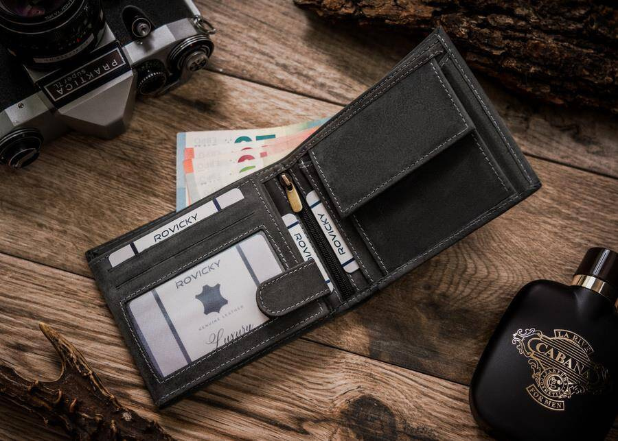 - banknoty schowasz do 2 otwartych, szerokich przegródek, wykończonych materiałową podszewką.