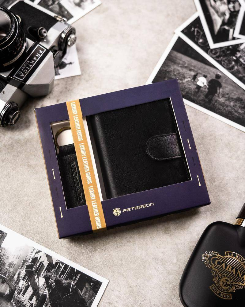 Zestaw prezentowy: skórzany, średni portfel męski i brelok do kluczy — Peterson
