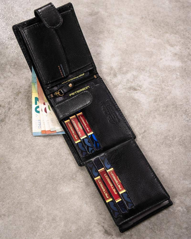 Praktycznie przez całą długość portfela wszyte są 2 głębokie i szerokie kieszenie na papierowe pieniądze.