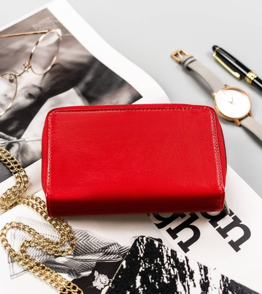 - 1 podwójnej kieszeni zamykanej na suwak. Kieszeń ta znajduje się po zewnętrznej stronie portfela.