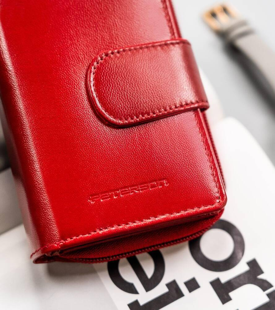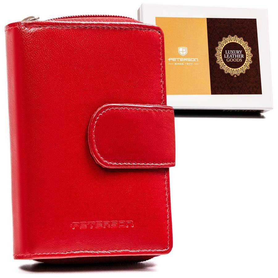 Damski portfel ze skóry naturalnej na zatrzask i suwak — Peterson