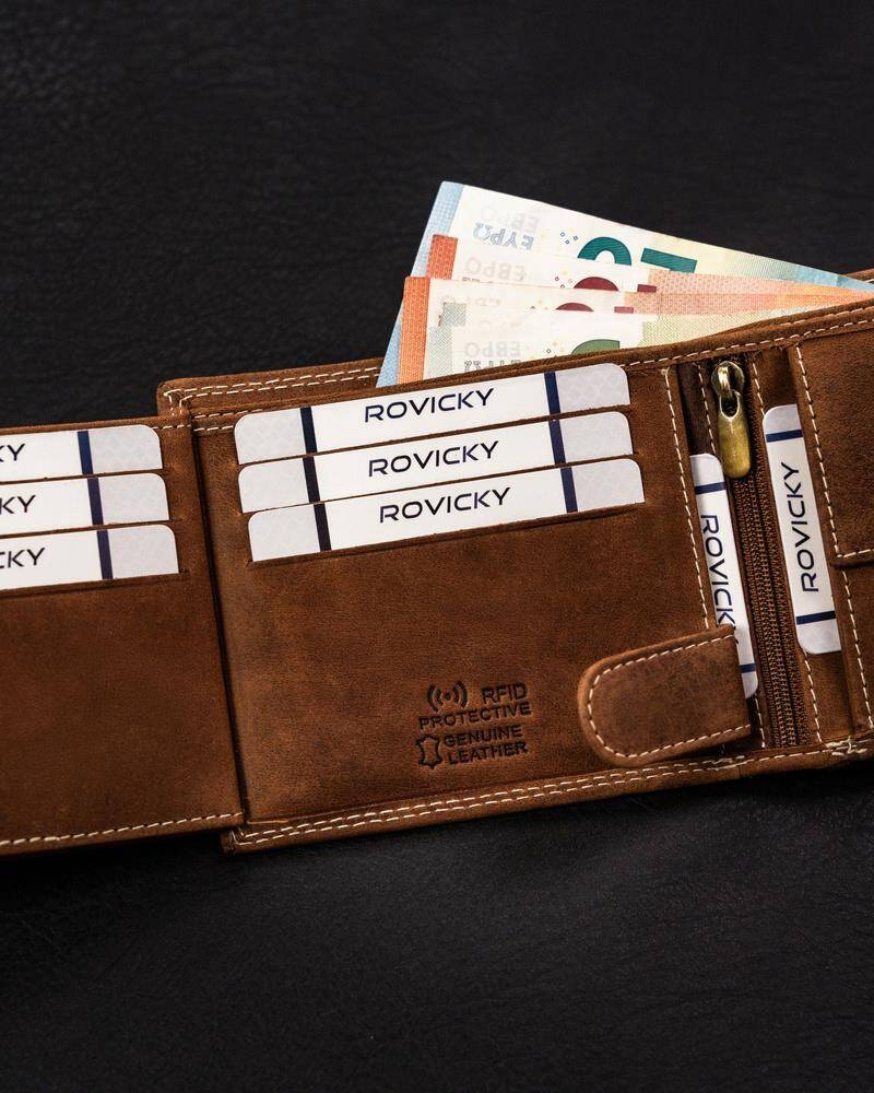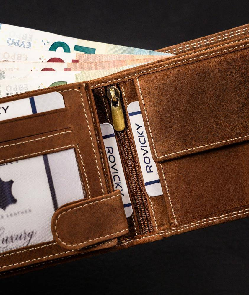 - banknoty schowasz do 2 otwartych, szerokich przegródek, wykończonych materiałową podszewką.