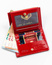 Front ozdobiony złotym logo marki. Portfel wyposażony w system STOP RFID, który zabezpiecza kartę w portfelu przed kradzieżą środków z konta.