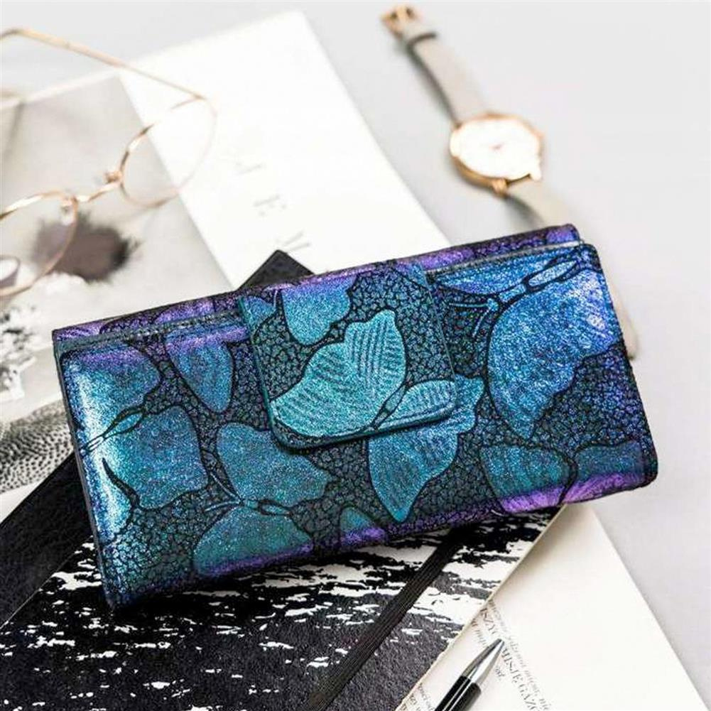 - Klasyczny fason z oryginalnymi detalami | Portfel o klasycznej stylistyce i nietypowym holograficznym wzorze w motylki. Model w orientacji poziomej, zapinany bezpiecznym i trwałym zatrzaskiem, dodatkowo na froncie portfela widnieje złote logo marki;