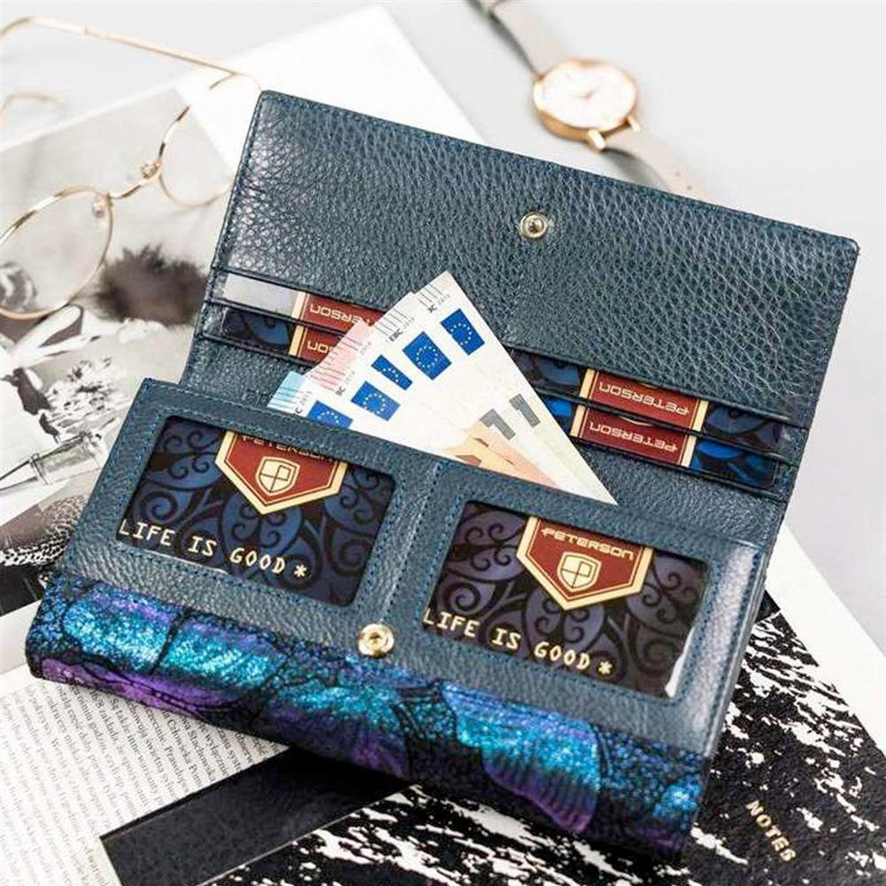 Duży, skórzany portfel damski na zatrzask — Peterson