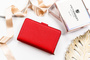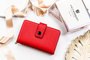 Sekcja na karty i dokumenty Portfel zapinany jest na zatrzask i suwak.