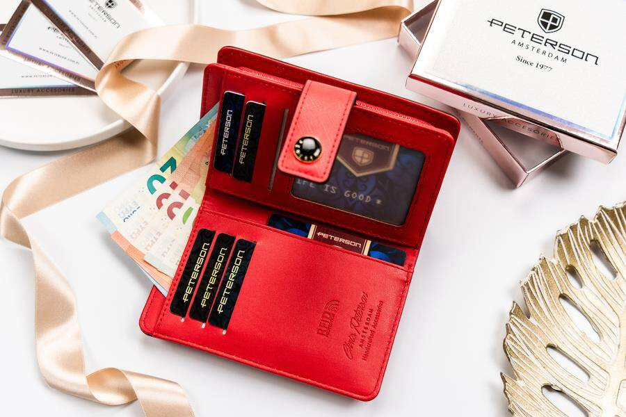 Portfel damski w orientacji pionowej ze skóry ekologicznej — Peterson Portfel odszyty bardzo trwale z doskonałej jakości skóry ekologicznej.