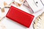 - Klasyczny fason | Piękny duży portfel damski o klasycznym kroju. Model w orientacji poziomej zapinany na zatrzask i suwak. Na wierzchniej warstwie ozdobiony tłoczonym wzorem. Wszystkie metalowe elementy są w złotym kolorze;