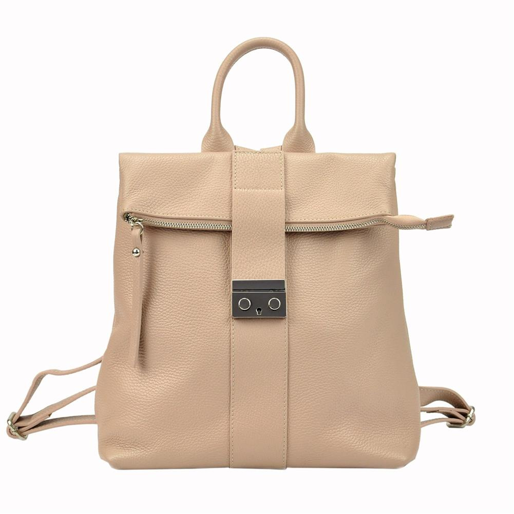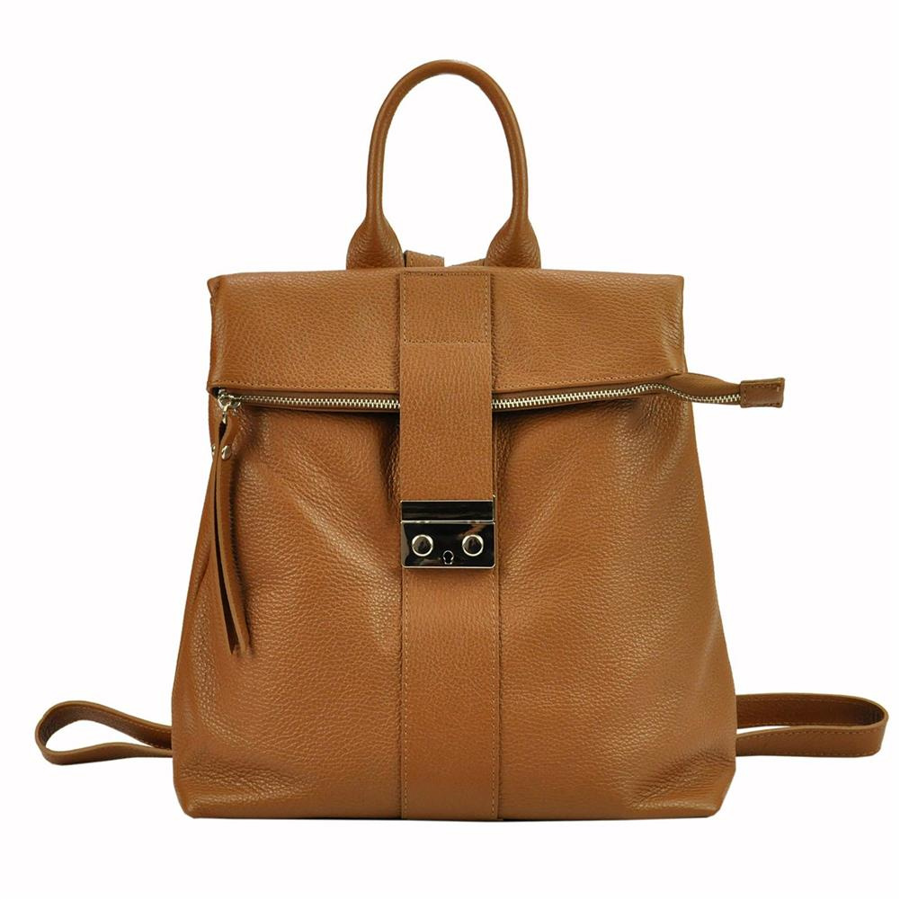 Średniej wielkości plecak z naturalnej, włoskiej skóry licowej.