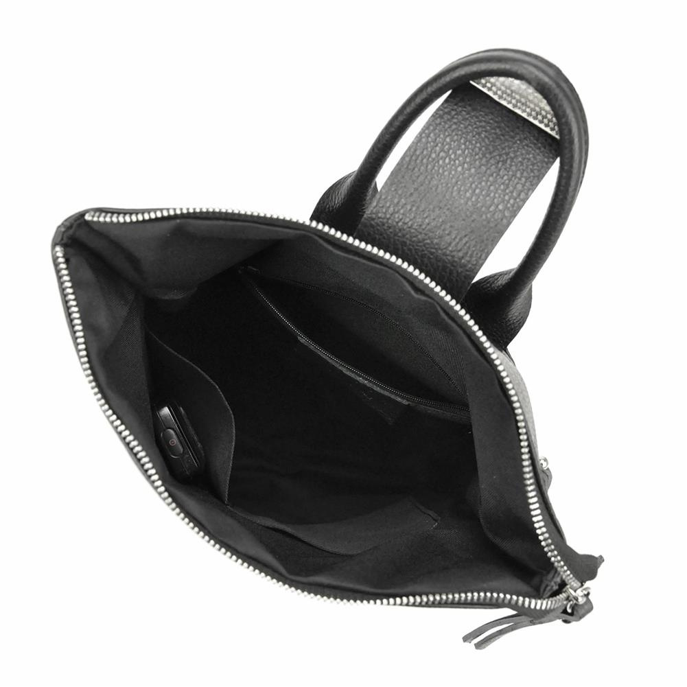 Plecak ma budowę jednokomorową z trwałą podszewką, wyposażoną w kieszonkę zapinaną na suwak i kieszeń na telefon.