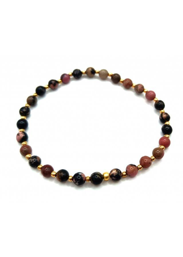 Kamień Rodonit i Hematyt Rozmiar kamienia: 4/2mm Długość: 17,5 cm Zapięcie: gumka Bransoletka może być wykonana na zapięciu- prosimy o informację w uwagach do zamówienia Biżuteria