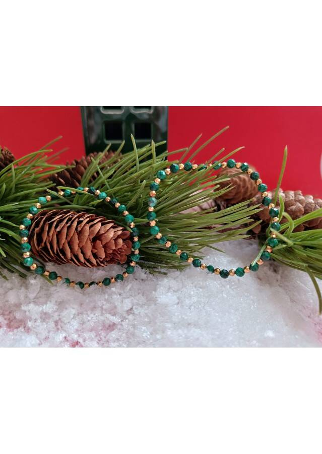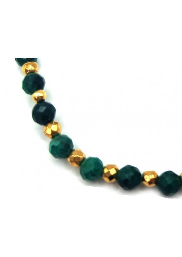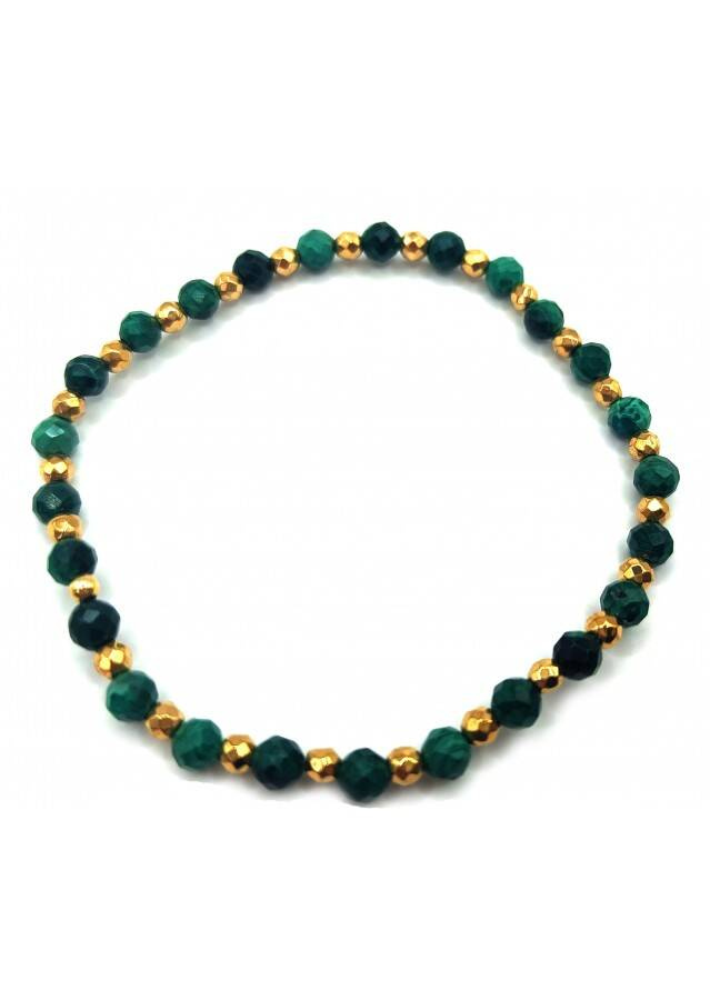 Kamień: Malachit i Hematyt Rozmiar kamienia: 4/2mm Długość: 17,5 cm Zapięcie: gumka Bransoletka może być wykonana na zapięciu- prosimy o informację w uwagach do zamówienia Biżuteria