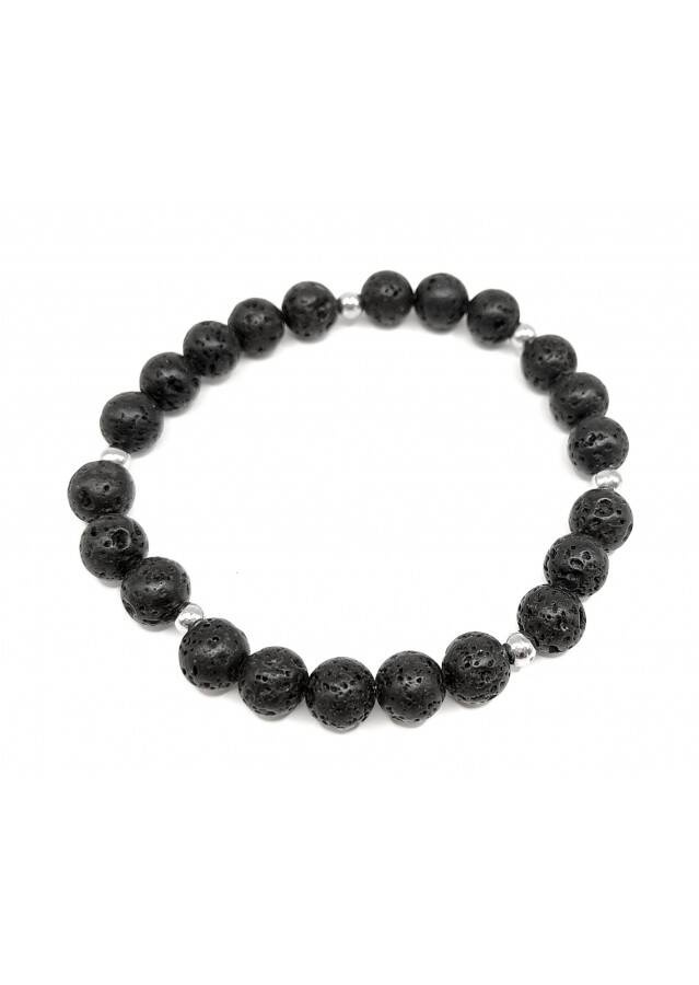 Bransoletka wykonana na gumce Kamień: Hematyt+ Lawa Rozmiar kamienia: 6mm Rozmiar uniwersalny.