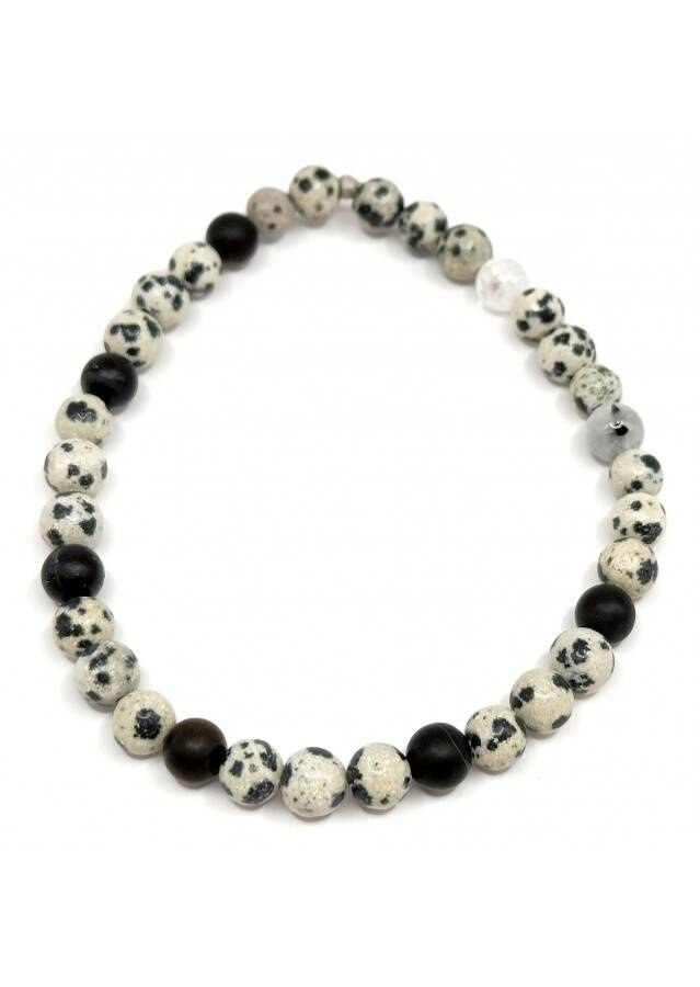 Bransoletka wykonana na gumce Kamień: Jaspis + Kryształ+ Lawa Rozmiar kamienia: 6mm Rozmiar uniwersalny. Produkt wykonywany ręcznie.