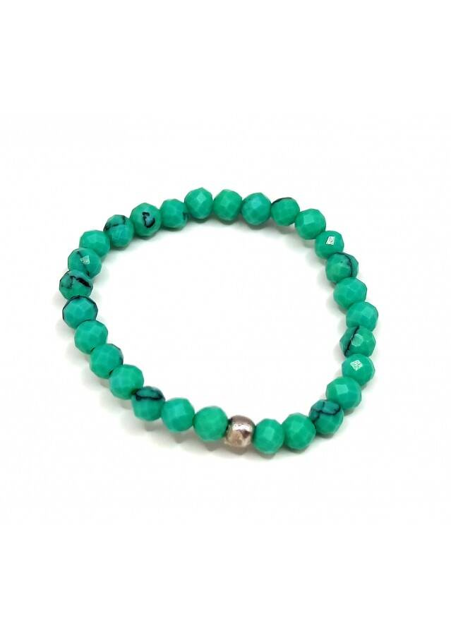 Kamień: Turkus+ srebrny element, Pierścionek wykonany na bardzo wytrzymałej gumce, odpornej na uszkodzenia.  Rozmiar kamienia: 2 mm Rozmiar uniwersalny. Produkt wykonywany ręcznie