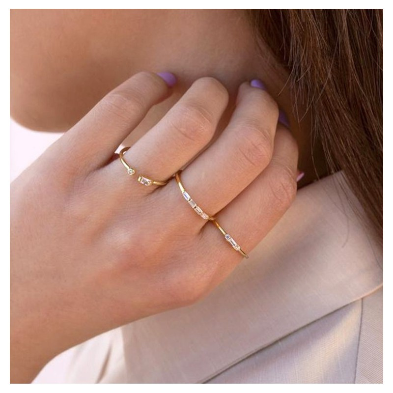 PLATEROWANY 14 karatowym złotem pierścionek z dużymi cyrkoniami. Kolor: złoty