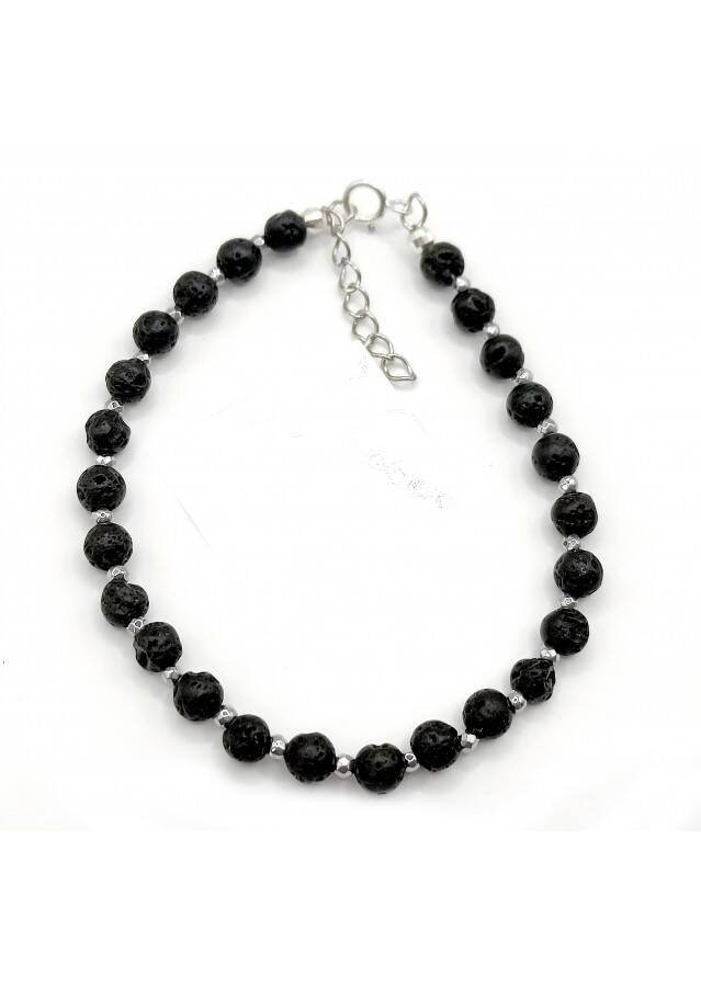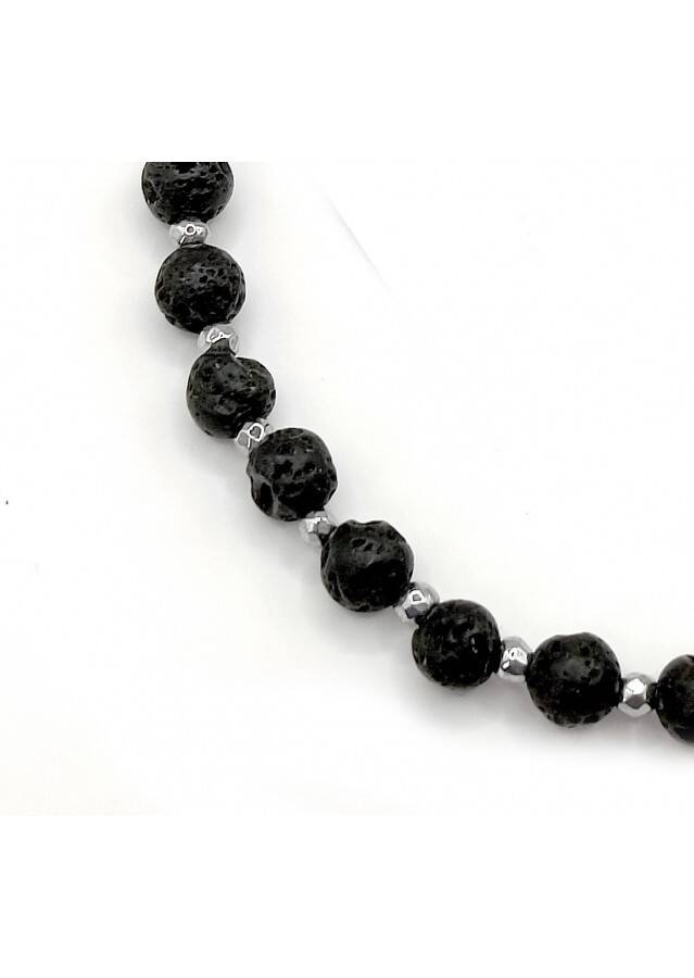 Bransoletka wykonana ze srebra próby 925, rodowana Kamień: Lawa i Hematyt Rozmiar kamienia: 4/2mm Długość: 17,5 cm  Zapięcie: federing Bransoletka może być wykonana na gumce- prosimy o informację w uwagach do zamówienia Biżuteria ręcznie wykonana, produkt Polski.