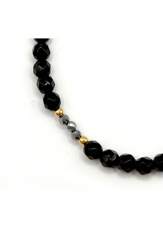 Bransoletka wykonana ze srebra próby 925 Kamień: Turmalin + Teraherz i Hematyt Rozmiar kamienia: 4/3/2mm Długość: 17,5 cm  Zapięcie: federing Bransoletka może być wykonana na gumce- prosimy o informację w uwagach do zamówienia Biżuteria ręcznie wykonana, produkt Polski.