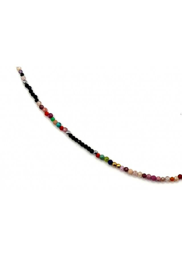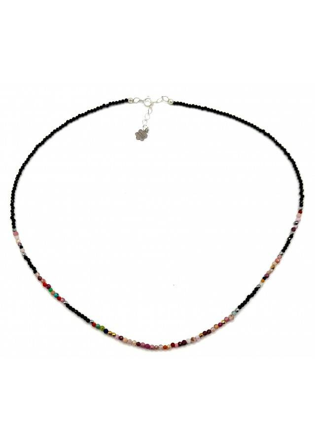 Naszyjnik wykonana ze srebra próby 925, rodowanego Kamień: Turmalin+ Hematyt + miks kamienia Rozmiar kamienia: 2 mm Długość: 42 cm  Długości do wyboru: 38 cm /42 cm/ 44 cm Zapięcie: klasyczne (federing) Biżuteria ręcznie wykonana, produkt Polski. UWAGA! odcinki kamienia z mixu mogą różnić się od przedstawionych na zdjęciu