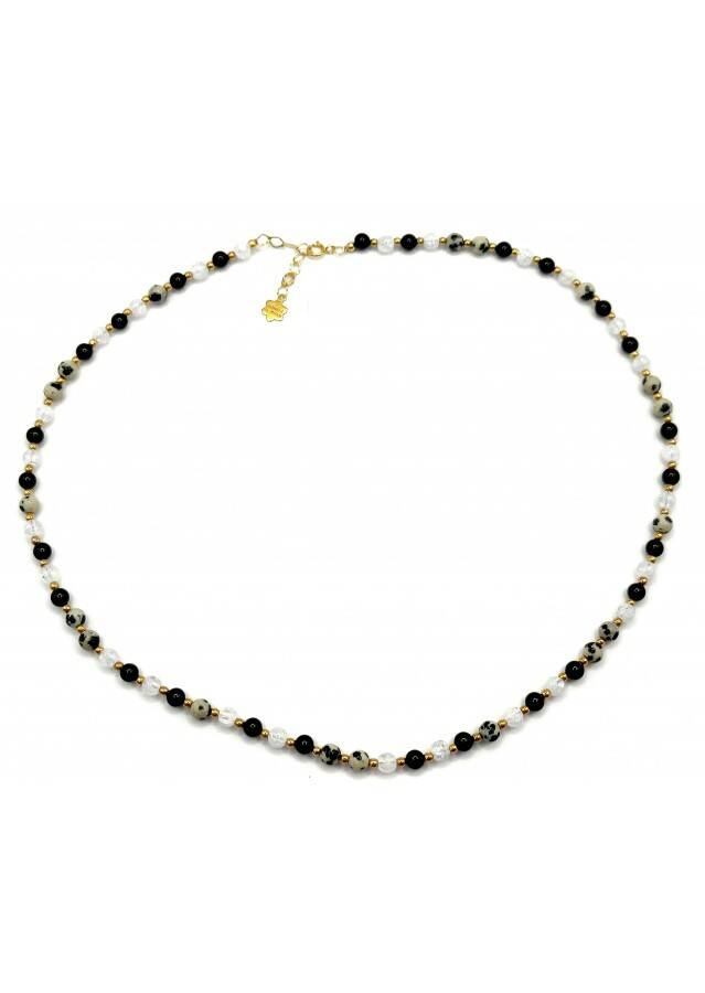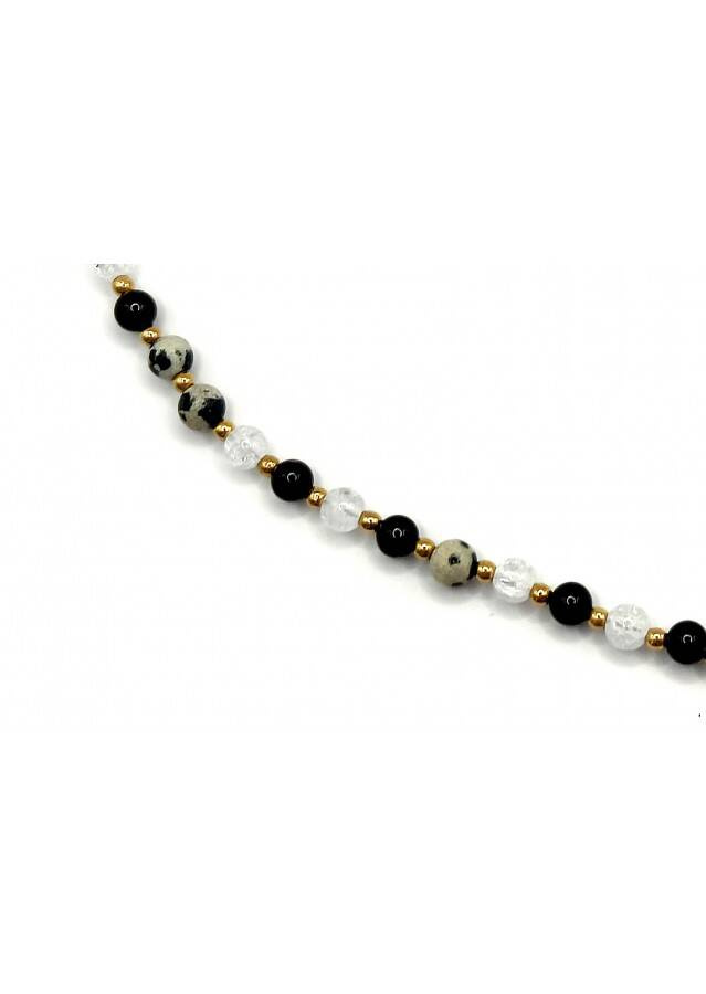 Kamień: Agat + Kryształ górski + Jaspis+ Hematyt Rozmiar kamienia: 4/2 mm Długość: 44 cm  Długości do wyboru: 38 cm /42 cm/ 44 cm Zapięcie: klasyczne (federing)