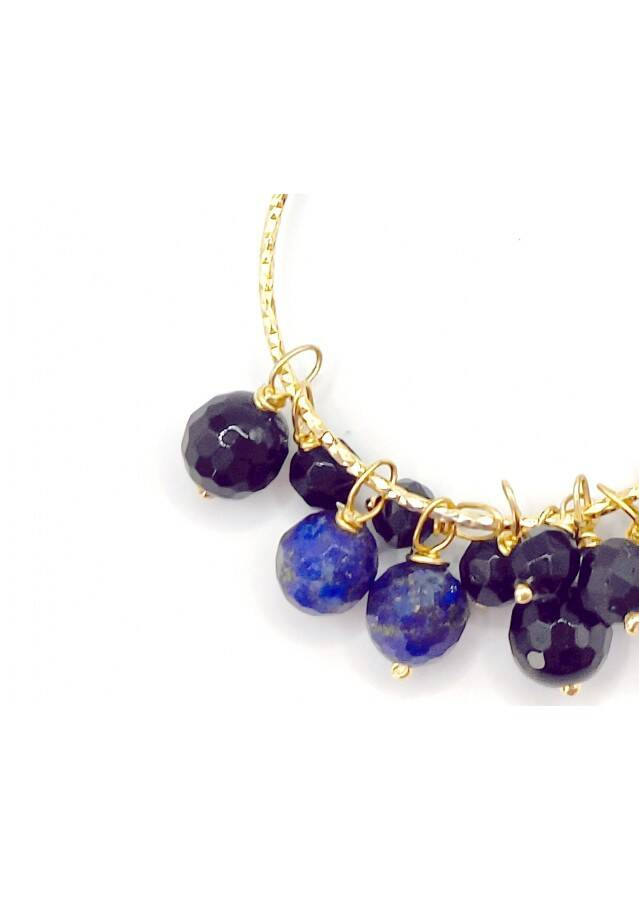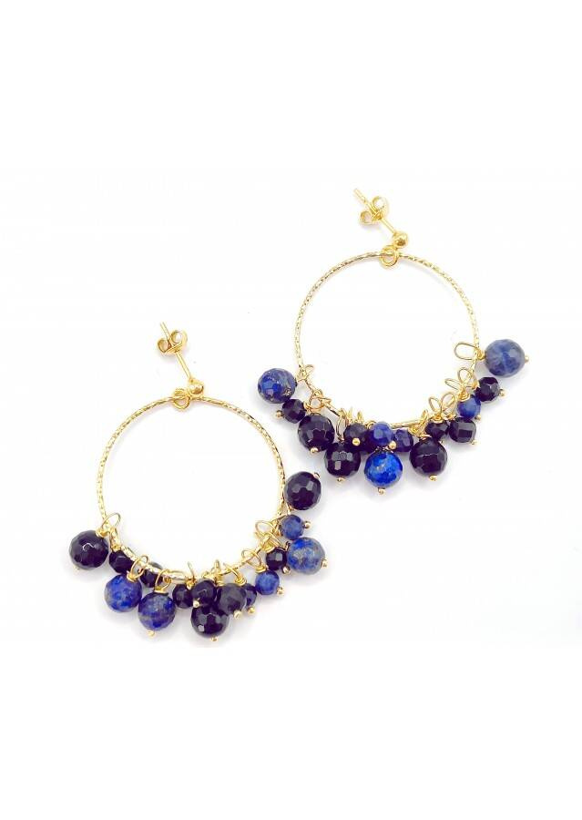 Kolczyki srebrne, próba 925, pozłacana 24 karatowym, żółtym złotem Kamień: Lapis+ Turmalin + Noc Kairu