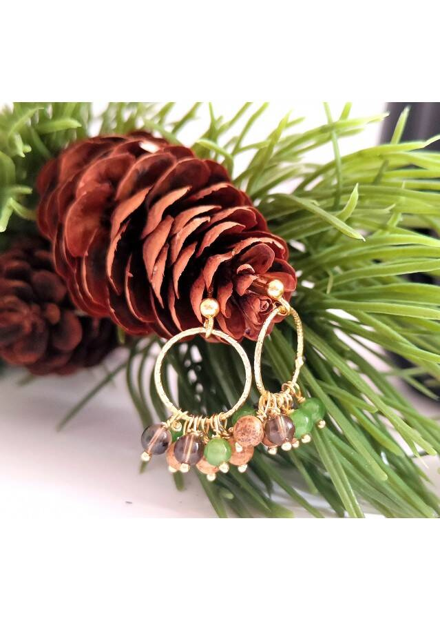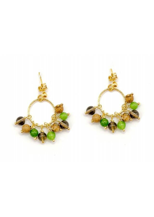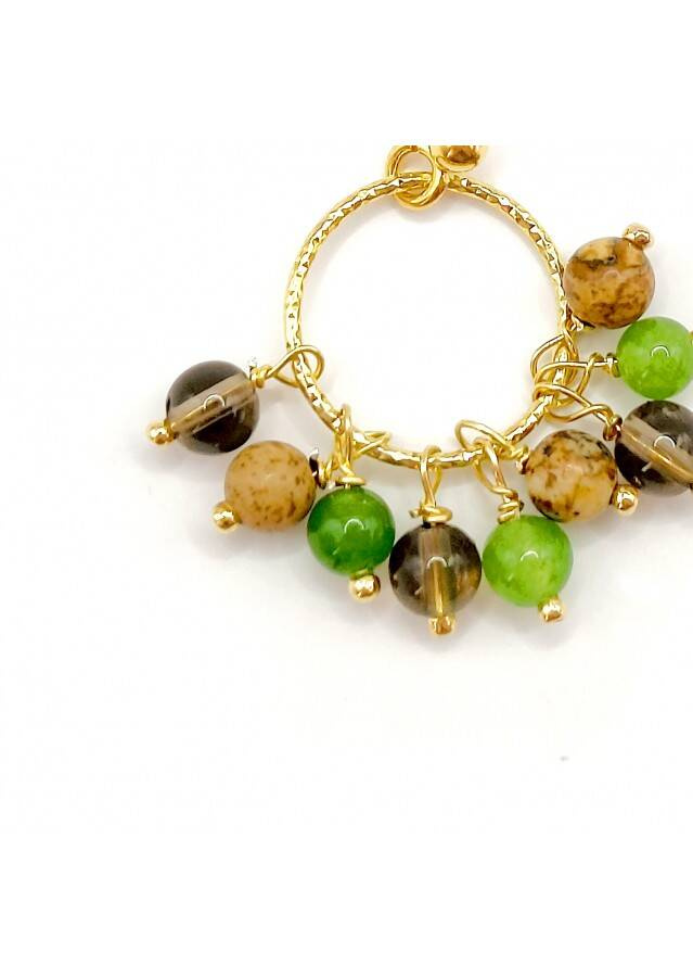 Kolczyki srebrne, próba 925, pozłacana 24 karatowym, żółtym złotem Kamień: Jaspis + Agat+ Kwarc