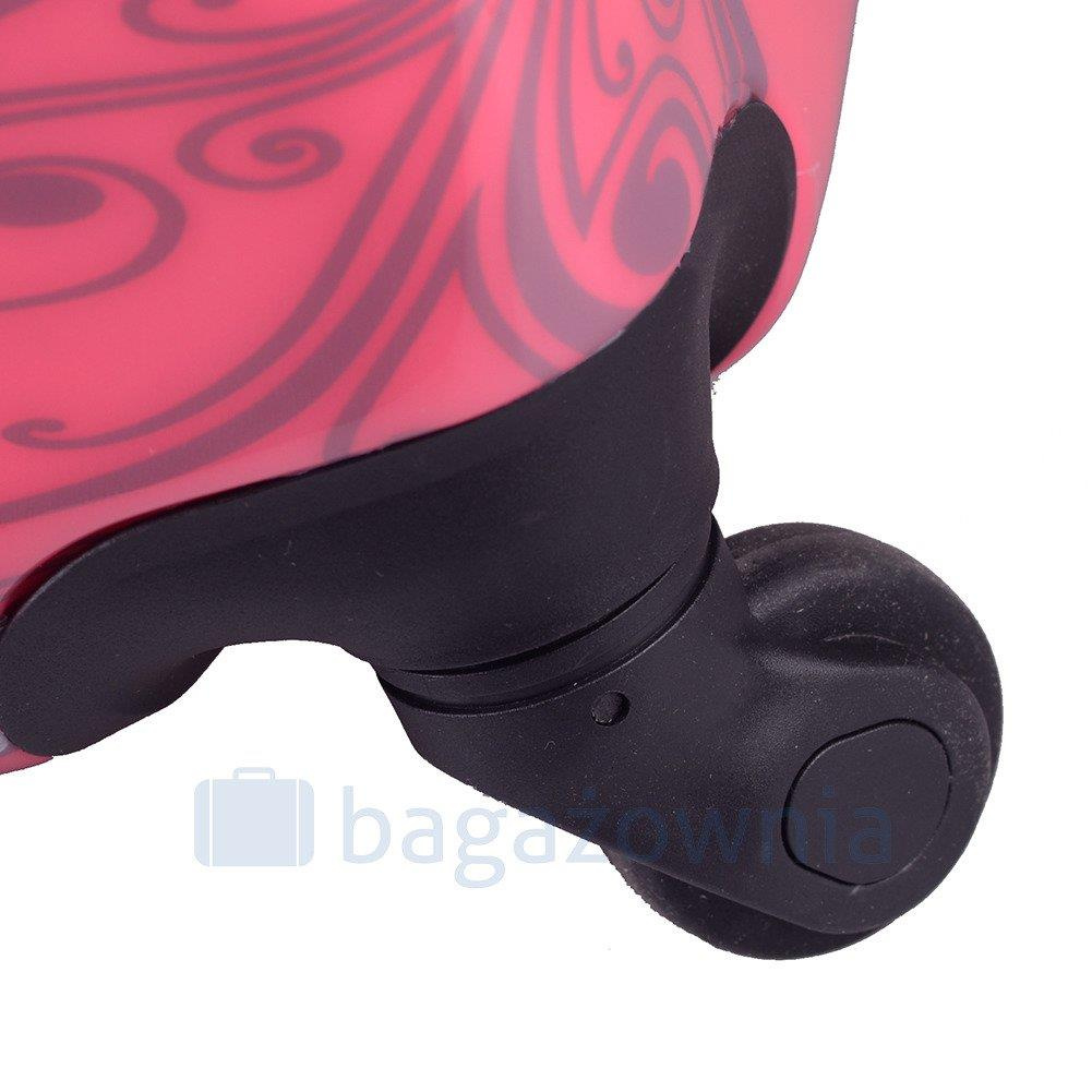 - 4 koła (spinner 360) (koła wykonane z gumy i PVC co dodatkowo wzmacnia je przed uderzeniami zewnętrznymi, oś na której zamocowane zostało koło wzmocniona pyłem diamentowym)