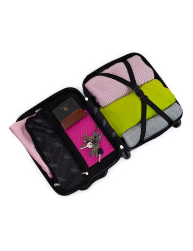 Walizka dzięki swoim wymiarom idealnie pasuje do kosza weryfikacyjnego na lotnisku o wymiarach 40x30x20