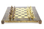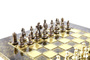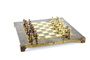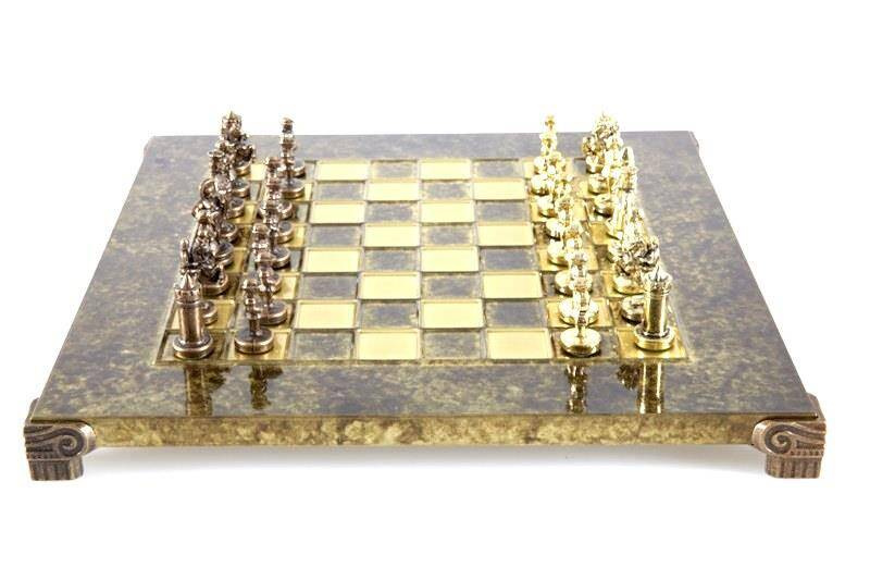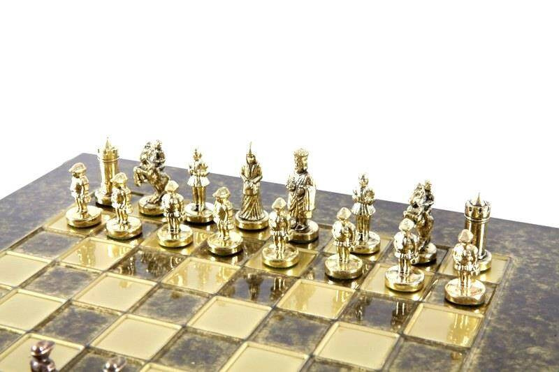 Ekskluzywne szachy metalowe Bizancjum Nasze szachy nawiązują do tradycji Imperium Bizantyjskiego, które dominowało w Europie południowo-wschodniej i Azji Mniejszej przez blisko 1000 lat. Figury szachowe inspirowane są czasami słynnej dynastii macedońskiej, której członkowie zasiadali na cesarskim tronie w latach 867-1056. Za czasów dynastii macedońskiej Bizancjum weszło w fazę rozwoju i rozkwitu nazywaną renesansem bizantyjskim. Bizantyjczycy hołdowali okresowi klasycznemu poszerzając go o chrześcijańskie elementy, które stały się inspiracją dla sztuki kolejnych epok. Był to czas dobrobytu, prestiżu i potęgi militarnej Cesarstwa. Wymiary: • Szachownica 20 x 20 cm • Wysokość króla 4cm • Waga kompletu: 2kg Bierki szachowe: • Szachy metalowe • Figury i piony wykonane ze stopu cynku. • Kolory: brązowe / złociste Szachownica: • Wykonana z mosiądzu • Kolory: bursztynowo-brązowe; • Ręcznie malowana Opakowanie: • Szachy zapakowane są w piękne, luksusowe, drewniane pudło. • W środku starannie wykonana wypraska do układania i bezpiecznego przechowywania figur. Szachy i szachownica wykonane zostały ręcznie z troską o zachowanie najwyższej jakości.