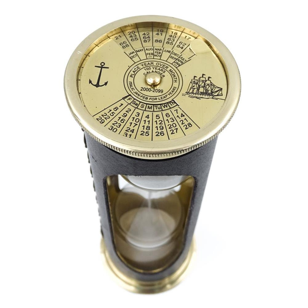 Klepsydra 5 min. Z zegarem światowym i kalendarzem wieczystym w etui skórzanym STPL133/6