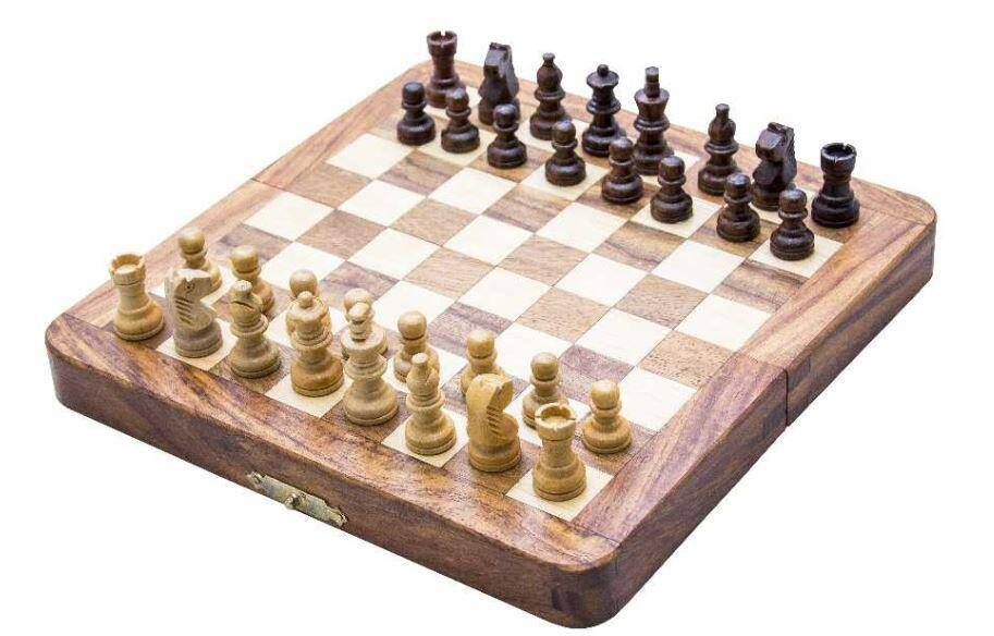 Szachy drewniane magnetyczne - gra strategiczna - G201Z Szachy drewniane magnetyczne G201Z to doskonały wybór dla tych, którzy chcą ćwiczyć umiejętności analityczne i strategiczne zarówno w domu jak i w podróży. · Wymiary rozłożonej szachownicy: 17 x 17 cm · Szachownica składana · Szachownica drewniana: akacja · Bierki wykonane z drewna · Bierki podklejone materiałem