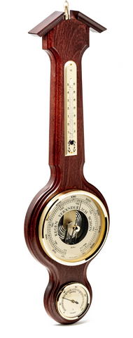 Stacja pogody Fischer 4673-22-001 Piękna, duża klasyczna stacja pogody niemieckiej firmy Fischer - barometr, higrometr, termometr Instrumenty osadzone w złocistych, mosiężnych oprawach Drewniana, lakierowana podstawa - kolor - mahoń Wymiary: 555x165mm Zastosowanie: wewnątrz pomieszczeń Dokładność pomiarów: - barometr ± 2 hPa - higrometr ± 5% r.h. (20 ... 100%), + 1 skala podziałki instrumentu - termometr ± 1 K, + 1 skala podziałki instrumentu