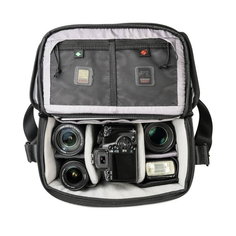 Kompaktowa torba na ramię VEO SELECT 28S została zaprojektowana wyłącznie w celu zapewnienia minimalnej objętości podczas noszenia na ramieniu. Te ekskluzywna torba jest doskonałym rozwiązaniem, aby spakować lustrzankę z zamocowanym obiektywem, 1-2-3 obiektywami dodatkowymi (w tym do 70-200mm F2.8), lampę błyskową, tablet 9,7" oraz drobne akcesoria. Niezależnie od zmieniającego się otoczenia, w którym się znajdziesz, z VEO SELECT będziesz cieszyć się jej wszechstronną adaptacją i będziesz mieć pewność, że Twój sprzęt jest bezpiecznie transportowany.