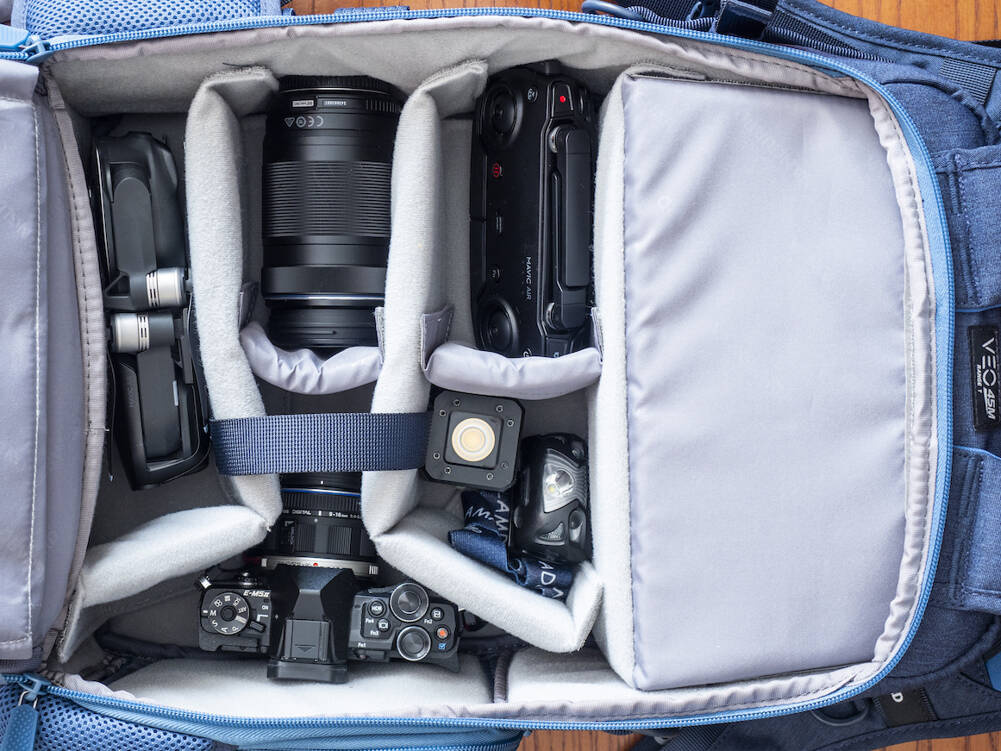 • Sekcje na dzienny ekwipunek lub dodatkową ilość sprzętu fotograficznego.