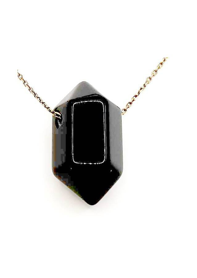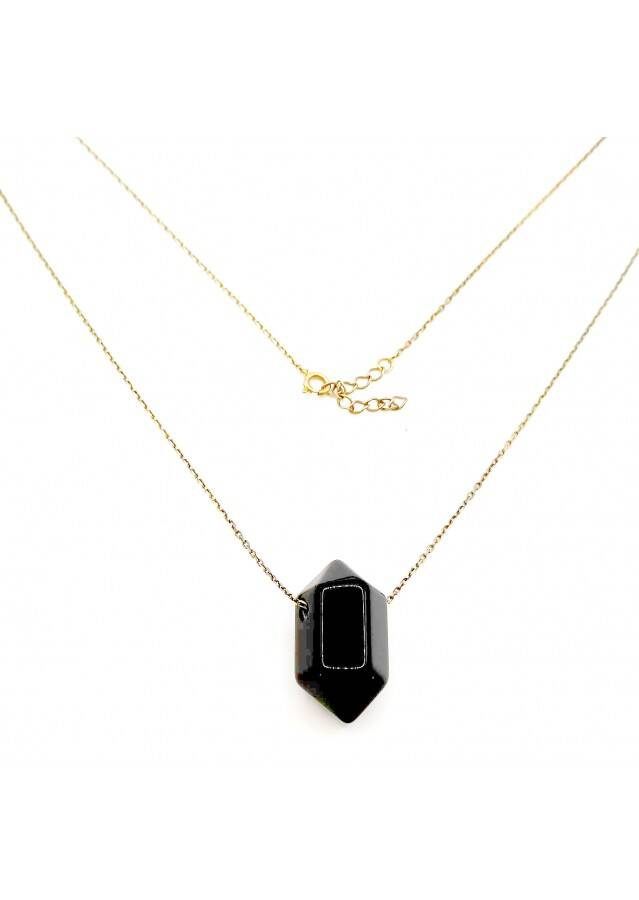 Naszyjnik wykonany ze srebra próby 925 , złoconego 24 karatowym żółtym złotem Kamień: Onyks Długość :45 cm + przedłużka Możliwość wykonania na łańcuszku rodowanym. Możliwość zamiany na kwarc różowy.