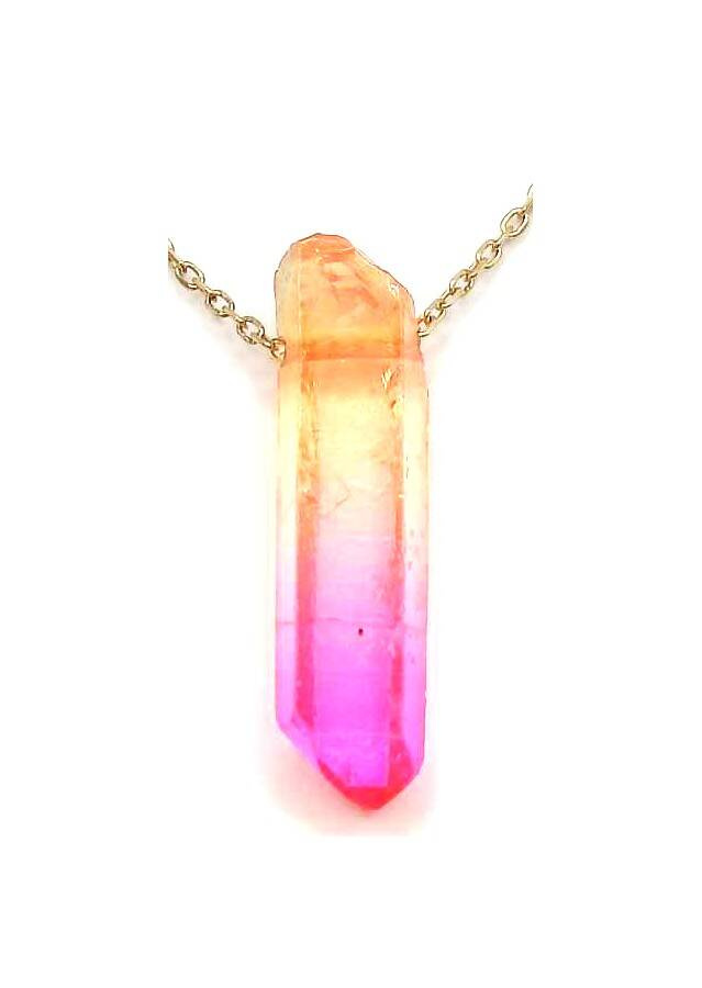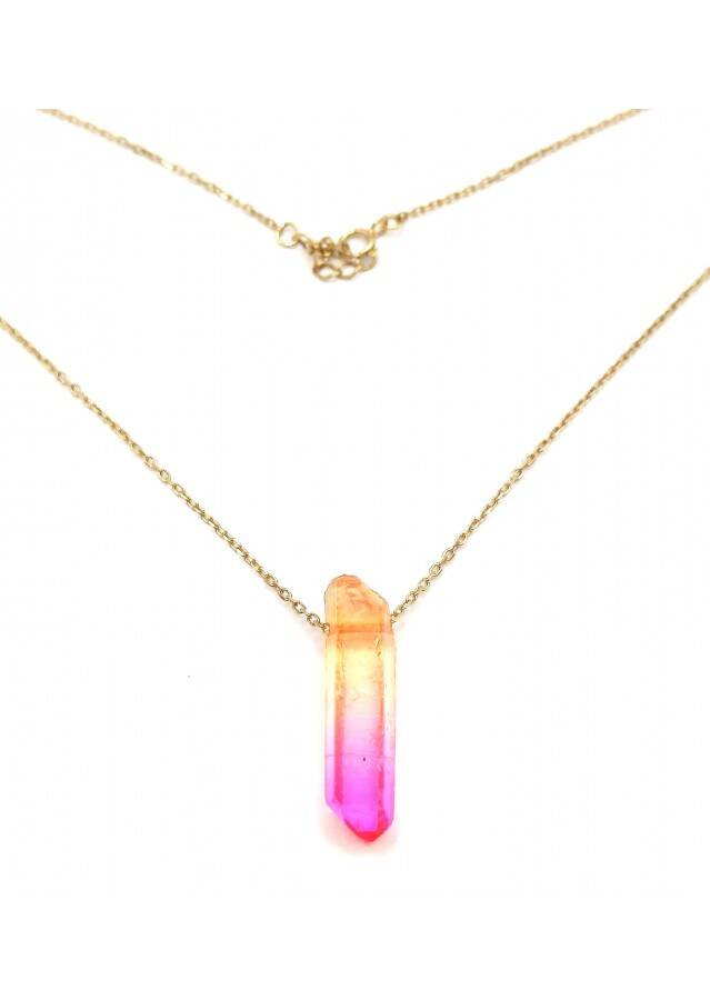 Naszyjnik wykonany ze srebra próby 925 , złoconego 24 karatowym żółtym złotem Kamień: Kwarc Długość :45 cm + przedłużka Możliwość wykonania na łańcuszku rodowanym