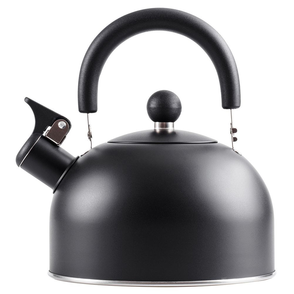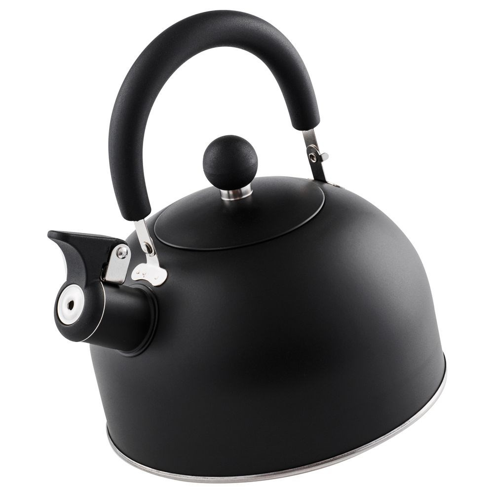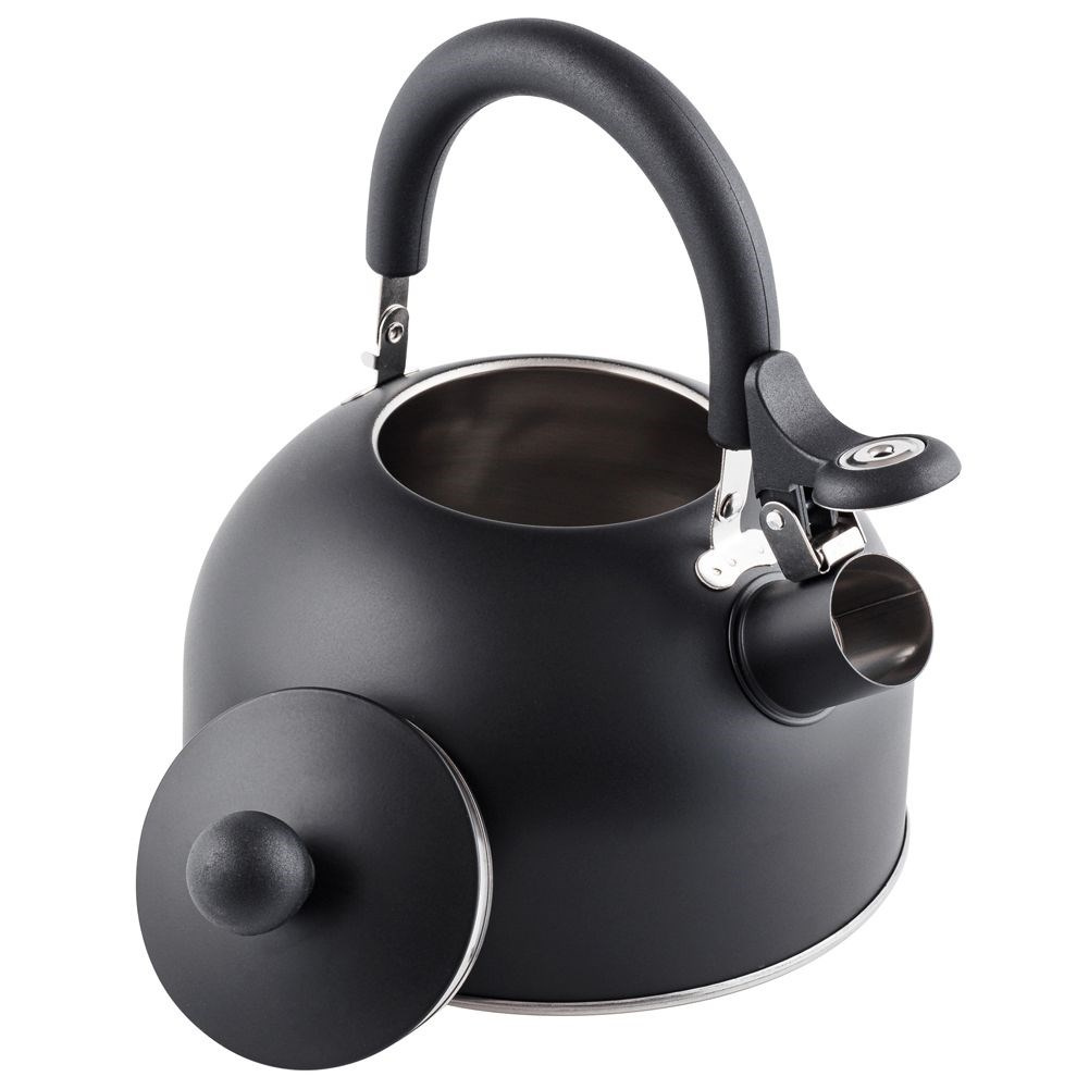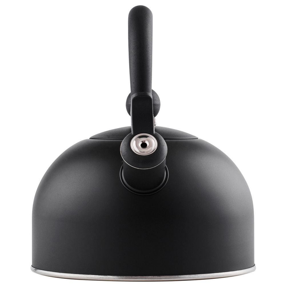 - STALOWY - Klasyczny czajnik wykonany z najwyższej jakości stali nierdzewnej. Utrzymany w czarnym, matowym kolorze. Stal nierdzewna jest trwała oraz neutralna dla podgrzewanej wody, nie wpływa w żaden sposób na jej właściwości. Posiada uchylny gwizdek oraz zdejmowaną pokrywkę. Czajnik ma pojemność całkowitą 2 l oraz wysokość 22 cm, pojemność użytkowa wynosi 1,5 l.