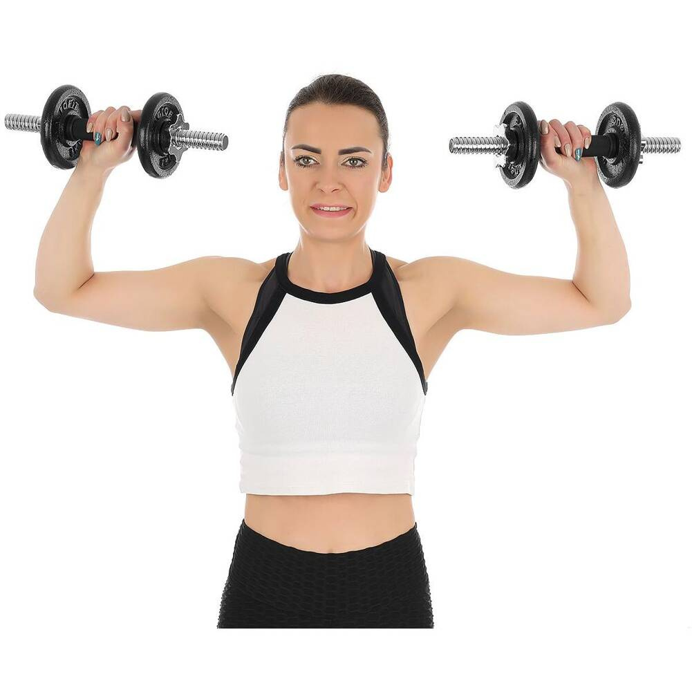- ergonomiczny i gumowany uchwyt hantli zadba o stabilną pracę bez ślizgania się w dłoni