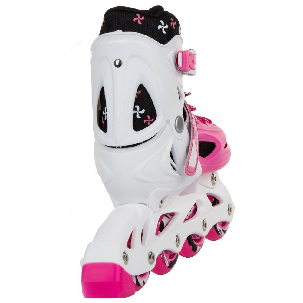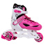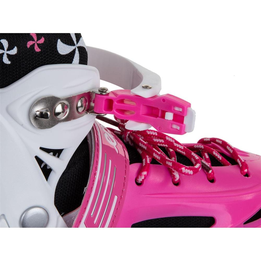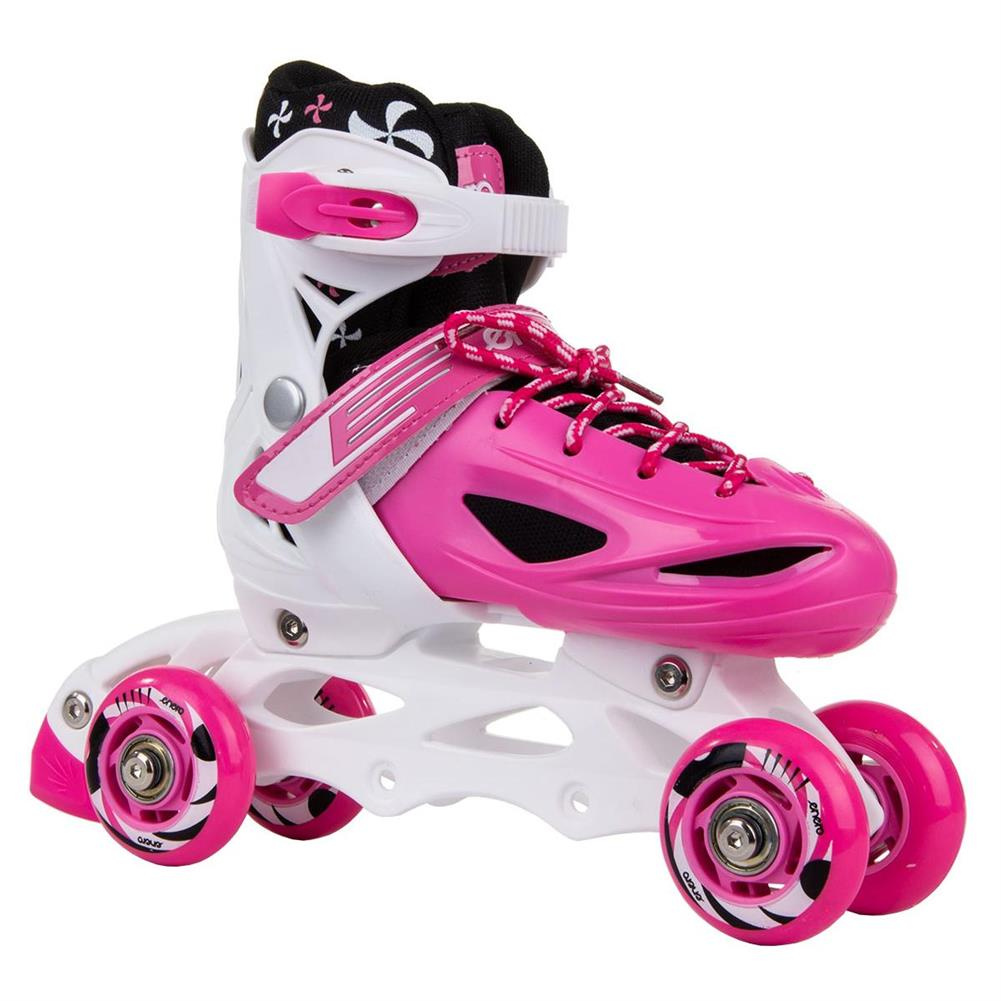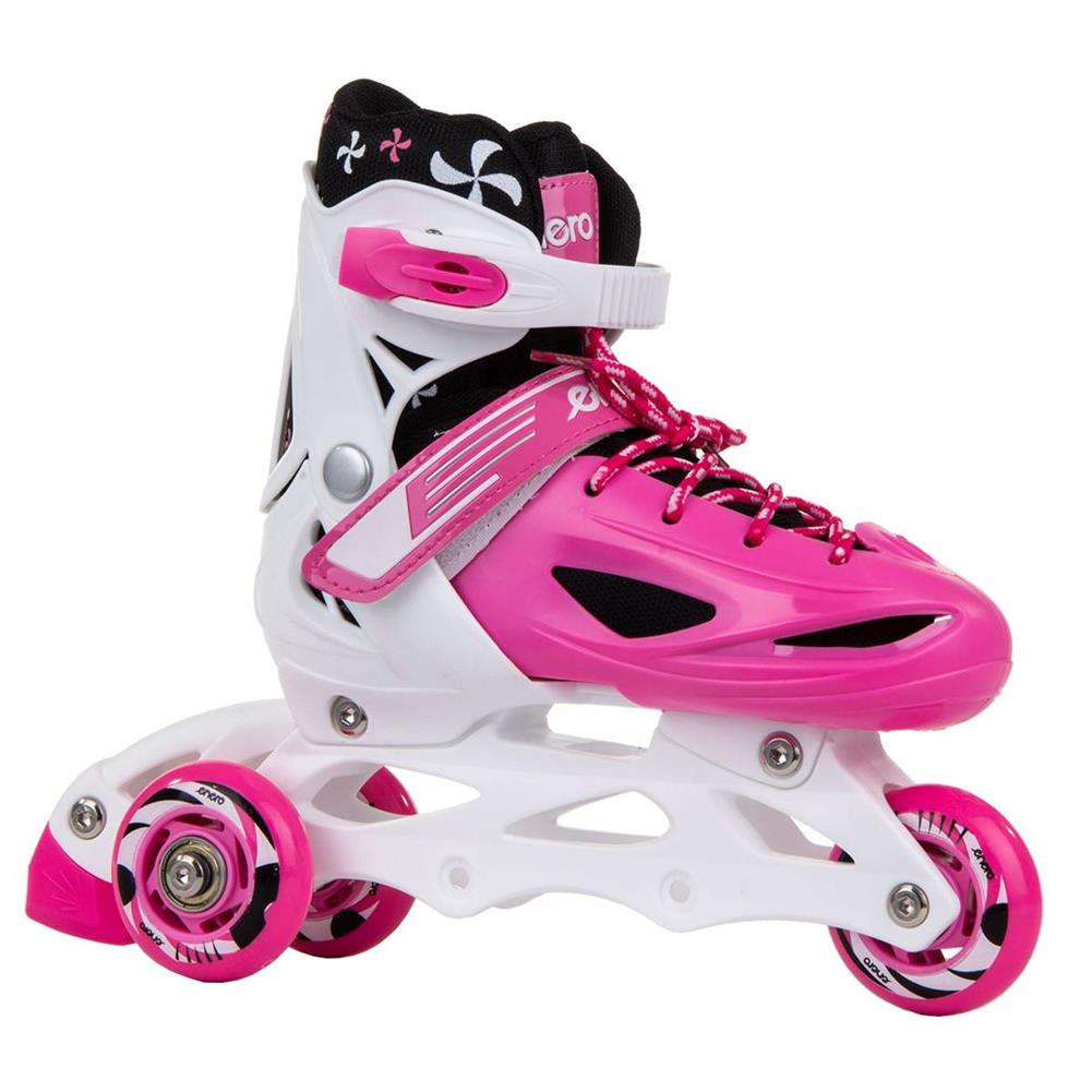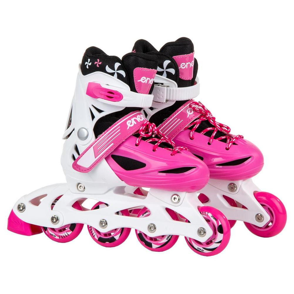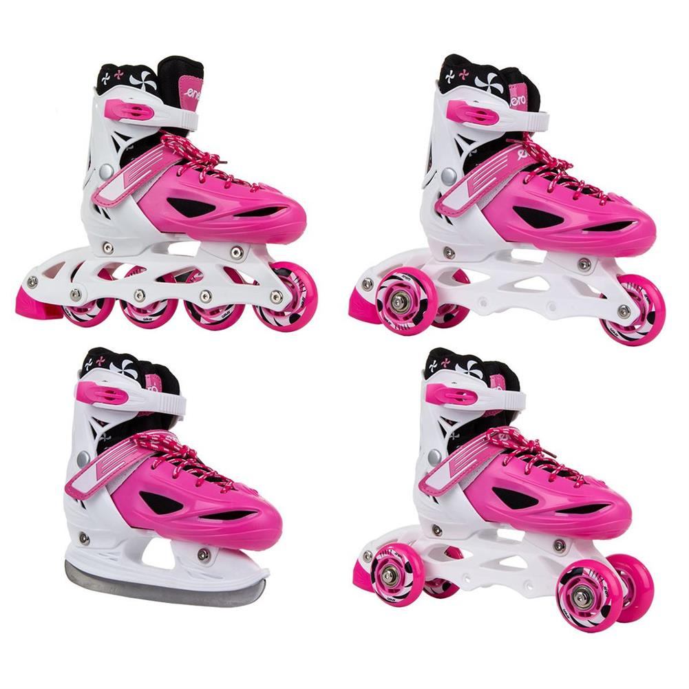 ŁYŻWOROLKI - 3 SKATE - ŁYŻWY- WROTKI 4W1 ENERO gwarantują czystą przyjemność z jazdy. Wyposażone są w lekką i mocną płozę z materiału PP, hamulec przy jednej rolce, kółka PVC o średnicy 64 mm i szerokości 22 mm, regulowane 3 zapięcia oraz regulację rozmiaru. Kółka z tworzywa PVC oraz łożyska ABEC 5 pozwalają na mniejsze opory toczenia, dobrze adoptują się do podłoża, idealnie pasują do nauki lub spokojnej rekreacyjnej jazdy. Wzmocniony wierzch obuwia , szeroki wygodny krój oraz miękka wyściółka wokół kostki zwiększają znacznie komfort użytkowania podczas jazdy. Ostrze łyżwy wykonane ze stali nierdzewnej jest odporne na uszkodzenia oraz rdzę.