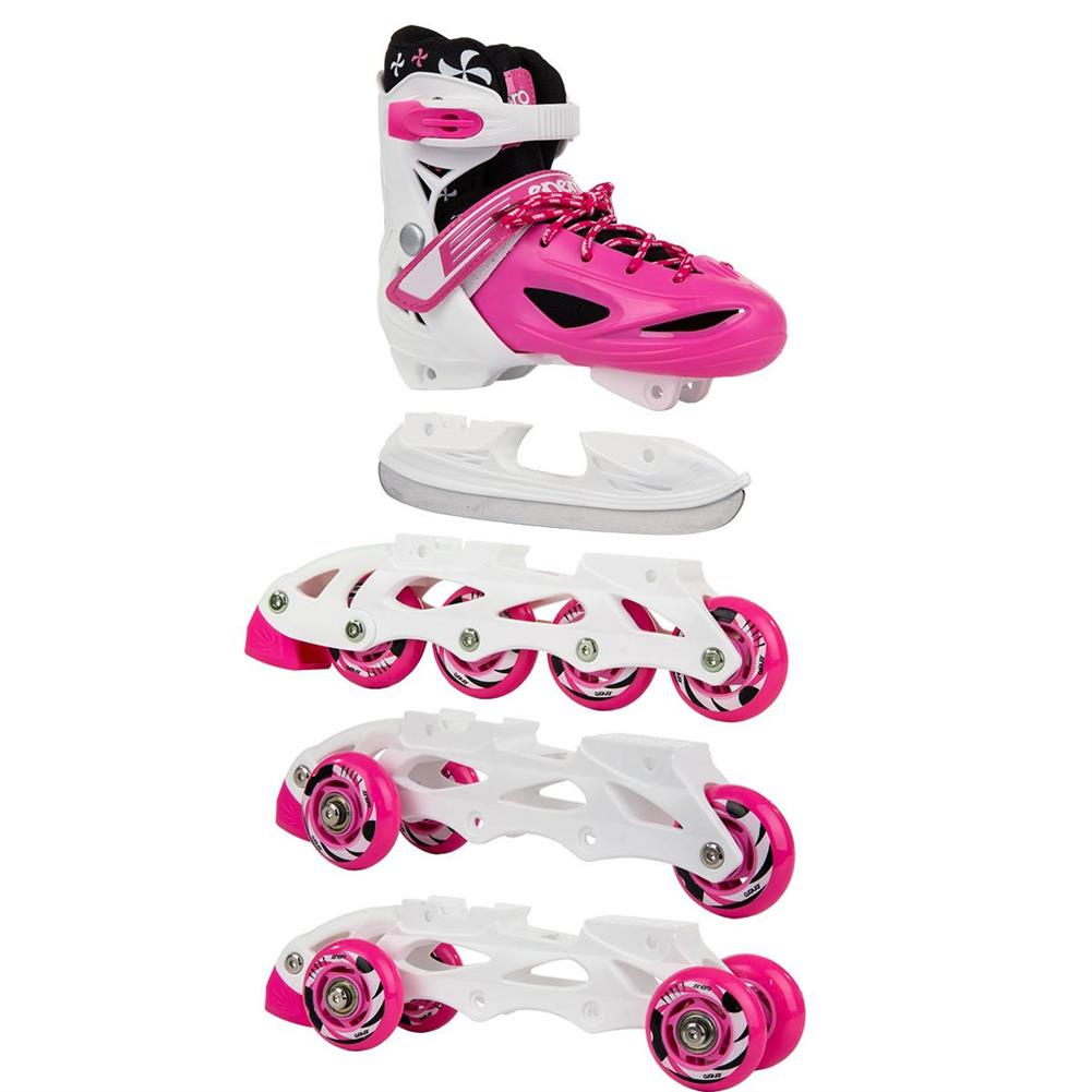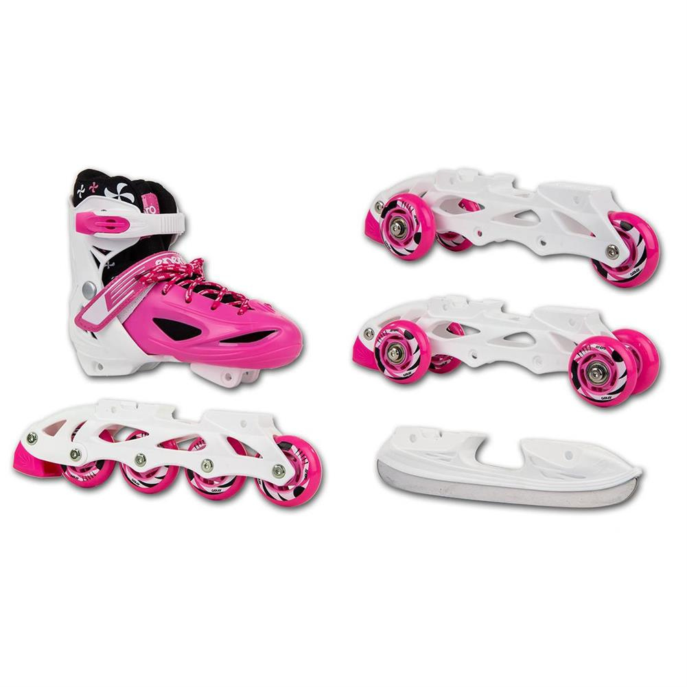 Funkcja 4 w 1 pozwala oszczędzić czas i pieniądze. Dzięki niej kupujesz rolki, łyżwy, wrotki oraz 3 SKATE za jednym razem, a dzięki regulacji rozmiaru może z nich dodatkowo korzystać np.: rodzeństwo. Do bezpiecznej jazdy niezbędne będą akcesoria typu kask, ochraniacze dostępne na naszej stronie internetowej!