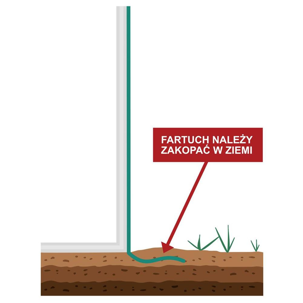 Specjalnie wydłużona zakładka (kołnierz) na bocznych brzegach do dł. 20 cm szklarni umożliwia obsypanie go ziemią lub obłożenie kamieniami, dzięki czemu tunel będzie jeszcze lepiej chroniony przed mocnym wiatrem.