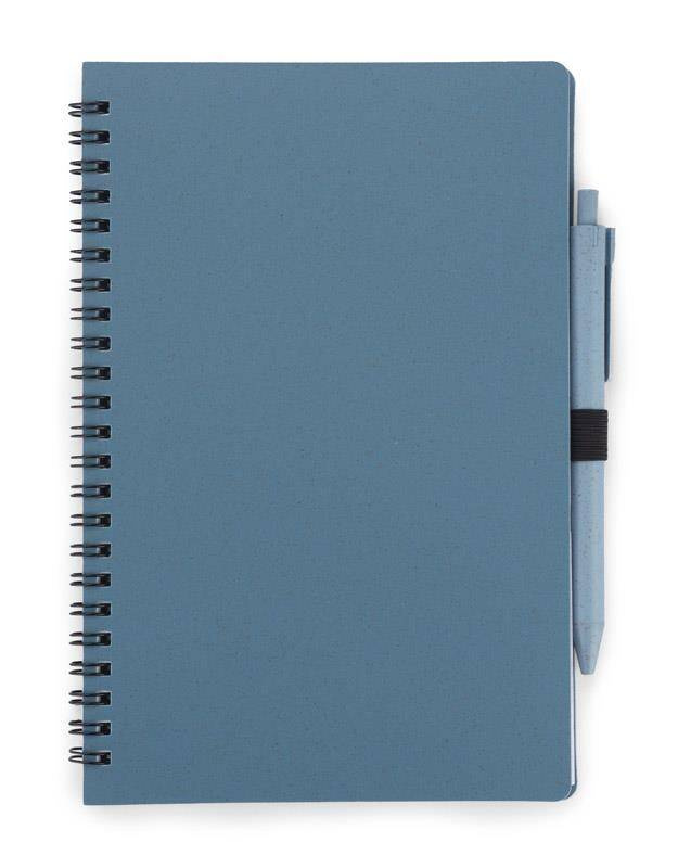 Notes TRESA z długopisem, kolorystyką dopasowanym do okładki. Długopis oraz okładka notesu wykonane są ze słomy pszenicznej. Notes na spirali, posiada 70 kartek w kratkę wykonanych z recyklingowanego papieru. Format A5. Wkład w długopisie w kolorze niebieskim.