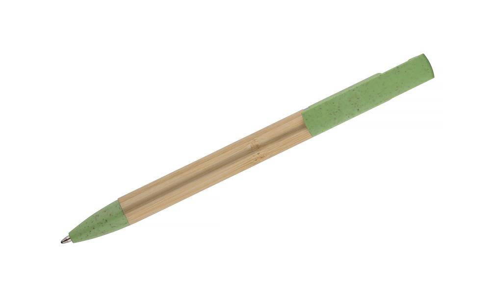 Długopis FONIK z bambusowym korpusem oraz klipem wykonanym ze słomy pszennej to praktyczny gadżet pełniący także funkcję stojaka na telefon.