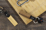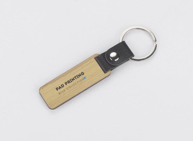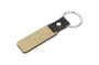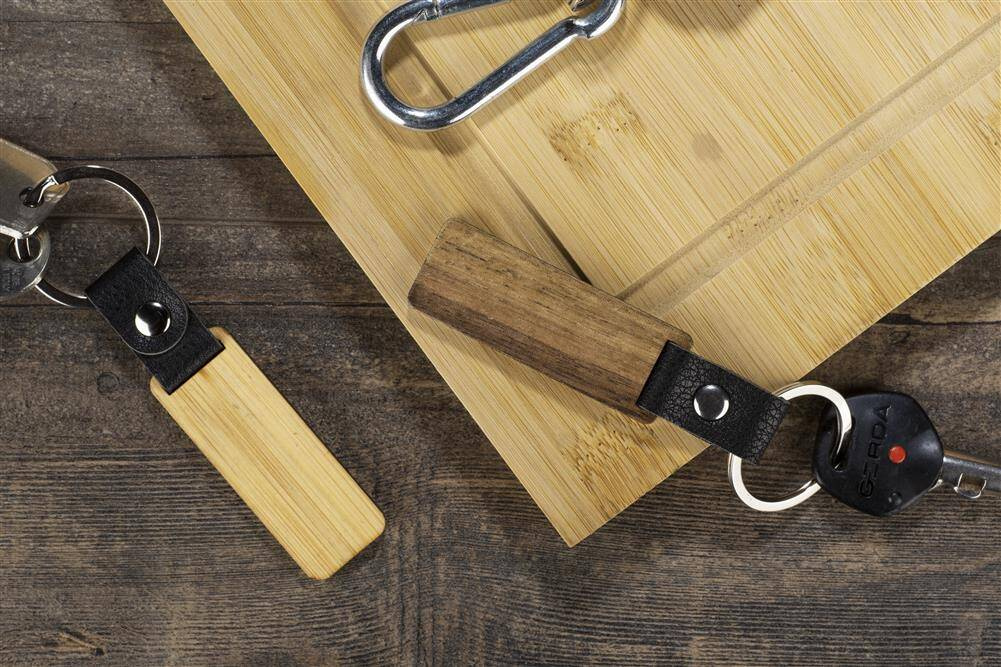 Brelok HOLZ to elegancki brelok wykonany z bambusa. Metalowa obręcz zawieszona jest na skórzanym pasku.